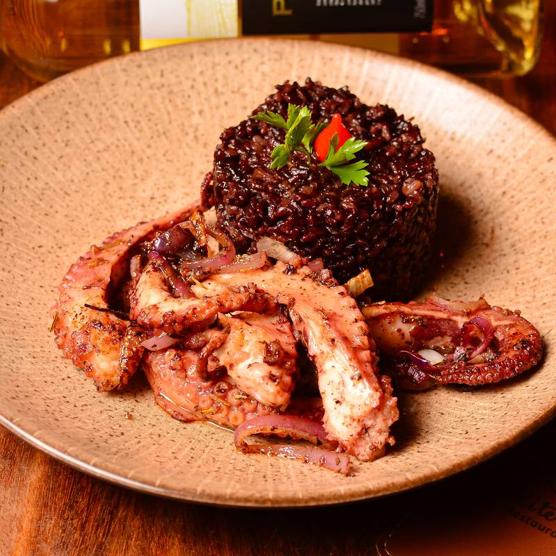 Lagosta Grelhada com legumes e Arroz Negro
