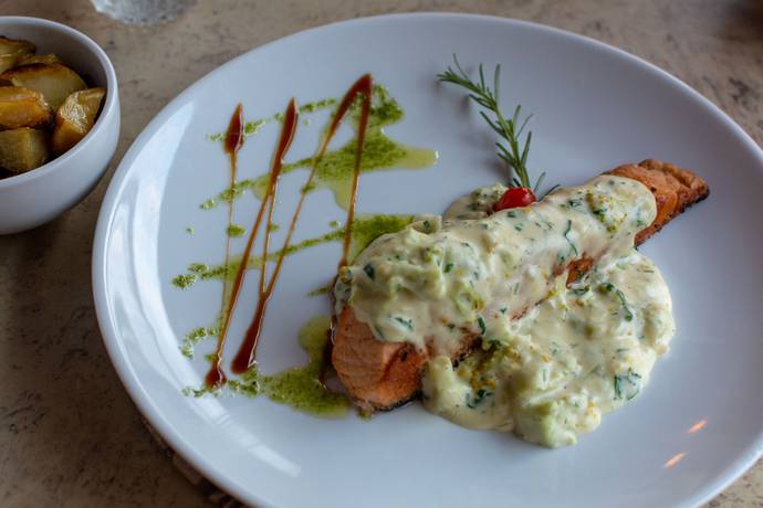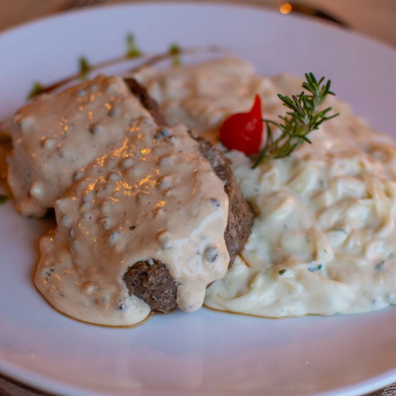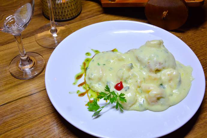 Filet de Badejo ao Molho de Camarão com Batata gratinada