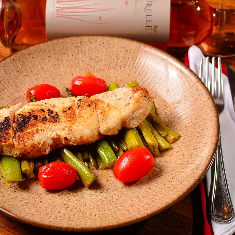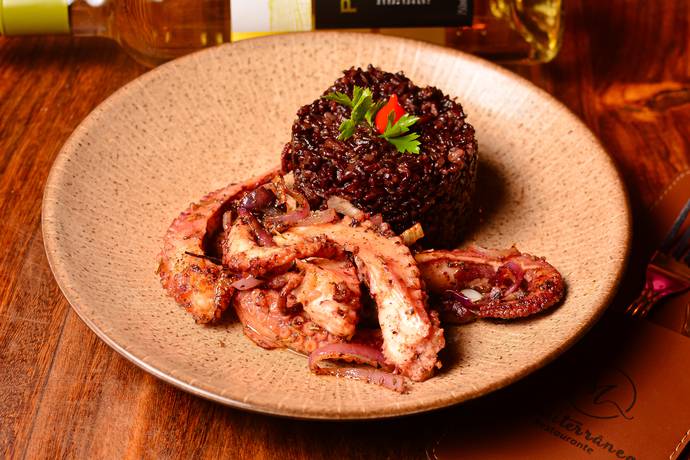 Lagosta Grelhada com legumes e Arroz Negro