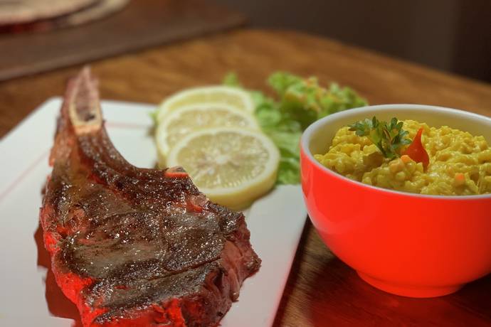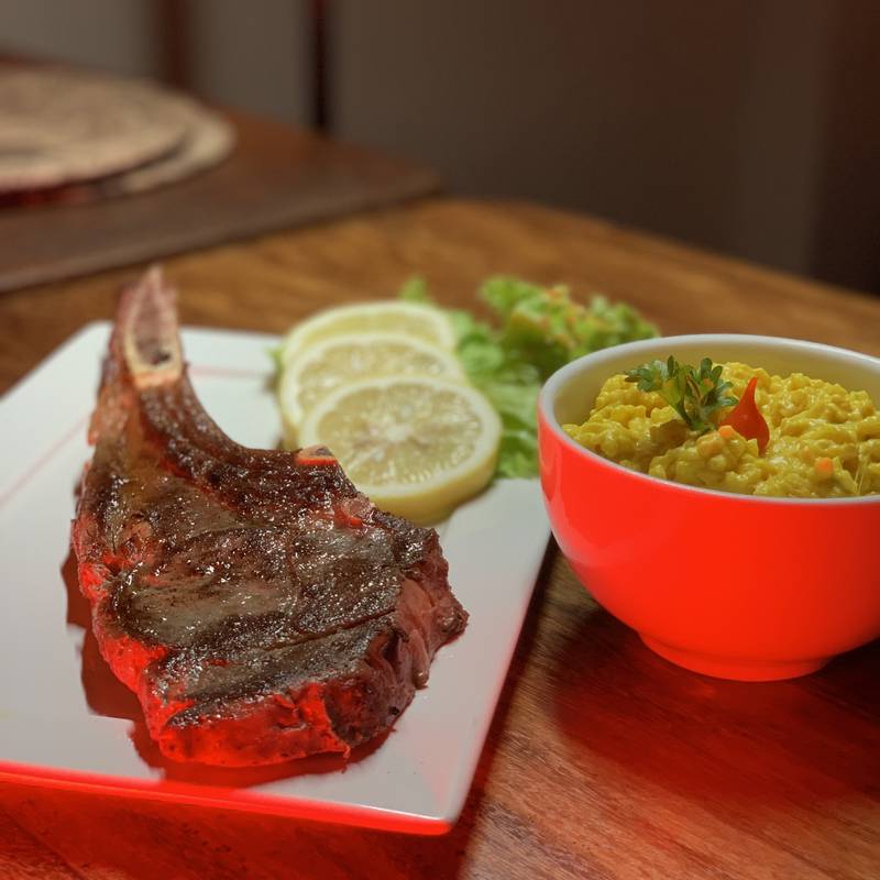 Carne do Sol de Cordeiro com Aipim e queijo Coalho
