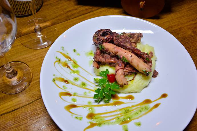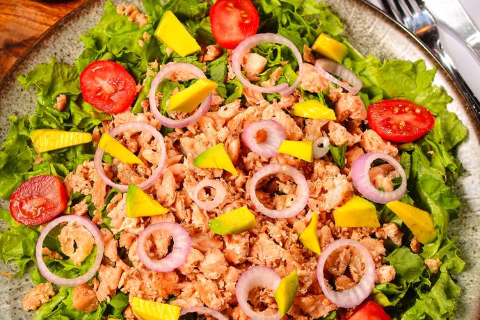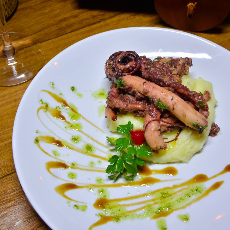 Salada de Polvo, Polvo Grelhado, Brocólis, Alface e Tomate Cereja.