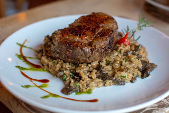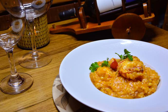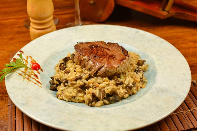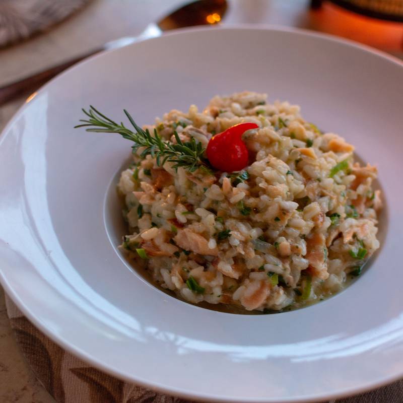 Risoto de queijo Brie com Tomate Seco e Rúcula